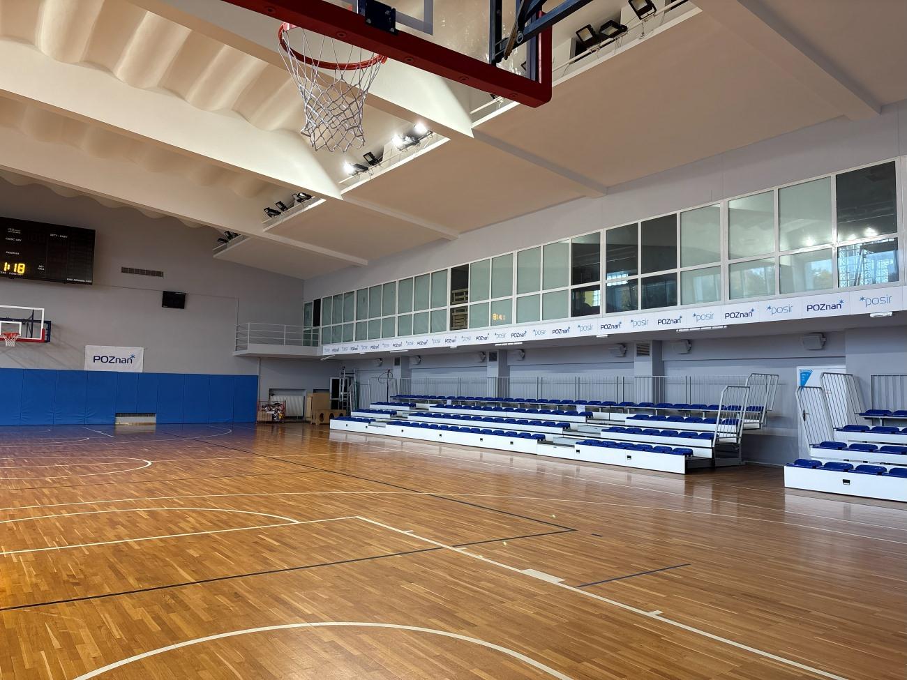 Częściowa renowacja parkietu – parkiet przy nowej trybunie został odświeżony i zabezpieczony. Dzięki temu zawodnicy i osoby korzystające z hali mogą liczyć na lepszą przyczepność i większe bezpieczeństwo podczas gry.