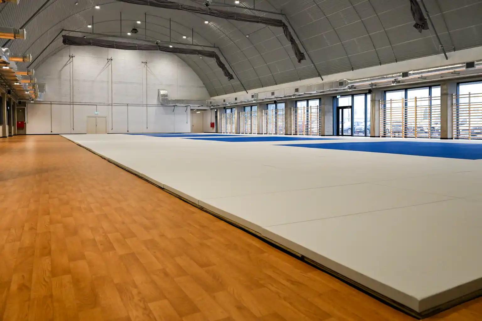 W głównej hali zamontowana została specjalna podłoga dostosowana do sportów walki. Jest wykonana z dwóch warstw sklejki drewnianej łączonych ze sobą za pomocą rzepów. Dolna warstwa wyposażona jest w kołki amortyzujące, które zapewniają jej właściwą sprężystość i stabilność. Na tak przygotowanej podłodze układane są maty typu tatami, których używa się w sportach walki. Dzięki zastosowanej technologii ograniczone zostanie ryzyko mikrourazów możliwych przy częstym wykonywaniu padów (technika upadków), gdyż podłoga z większą siłą pochłaniania uderzenia o matę. Amortyzacja działa niezależnie od wagi zawodnika oraz twardości i grubości maty.