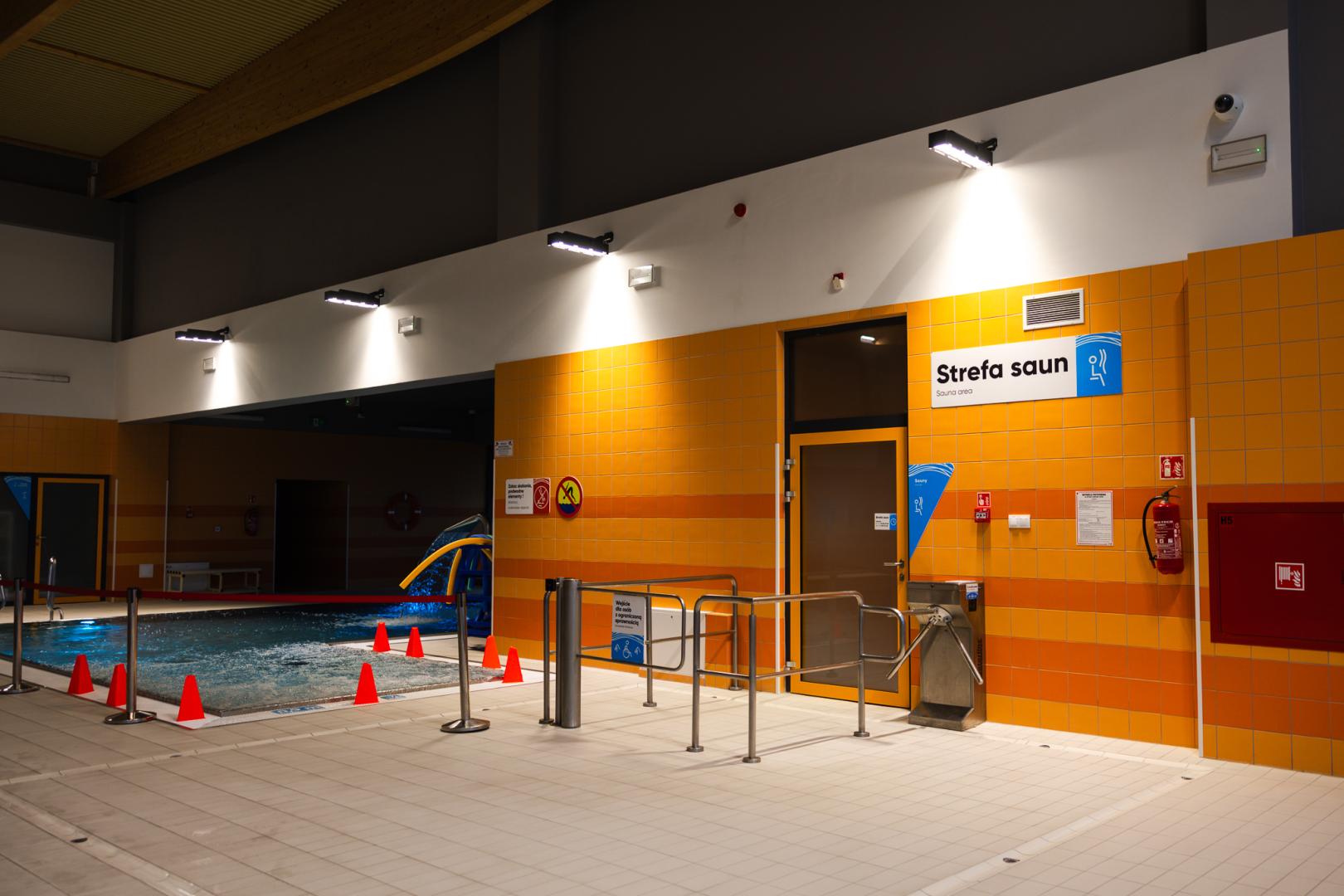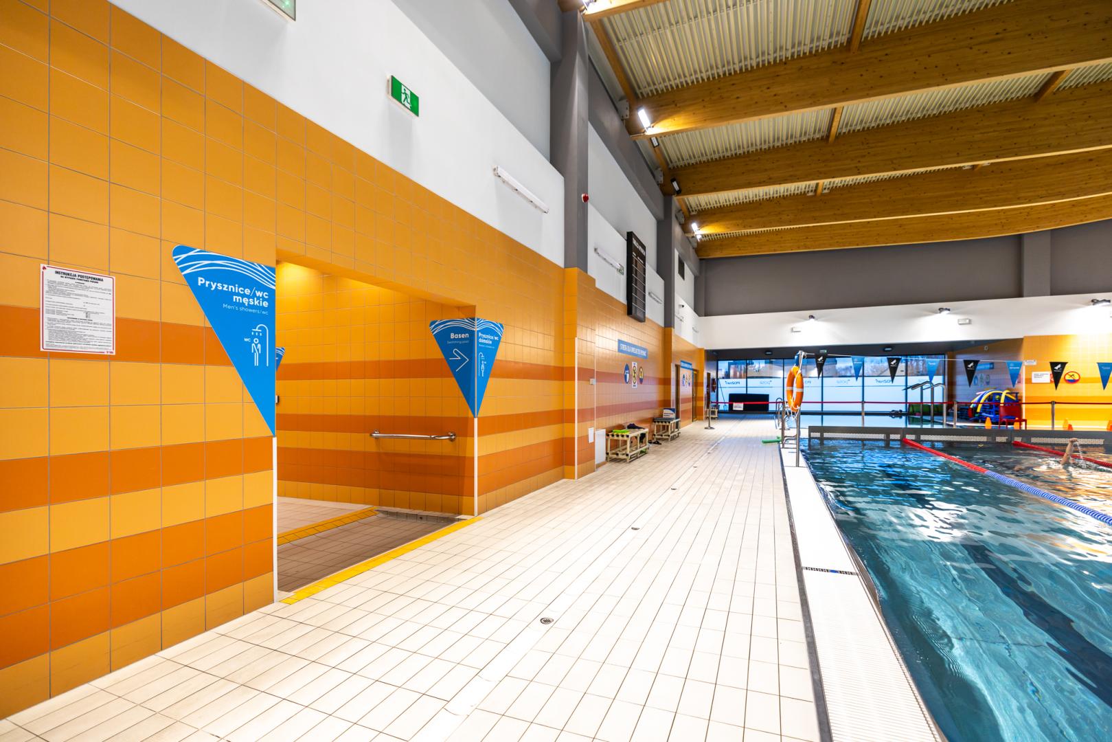 Przy pływalni znajdują się 4 wyznaczone miejsca parkingowe dla osób z niepełnosprawnością. Wejście do obiektu pozbawione jest progów oraz schodów. W obiekcie znajdują się barierki umożliwiające poruszanie się. Obiekt posiada pętlę indukcyjną w kasie. Basen wyposażony jest w podnośnik dla osób o ograniczonej możliwości poruszania się umożliwiający wejście zarówno do basenu 25-metrowego, jak i małego basenu rekreacyjnego. Basen posiada wydzieloną szatnię dla osób z niepełnosprawnością oraz wydzieloną toaletę z natryskiem. W szatni jest możliwość przewinięcia osoby dorosłej. Obiekt posiada wózek dla osób z niepełnosprawnością.